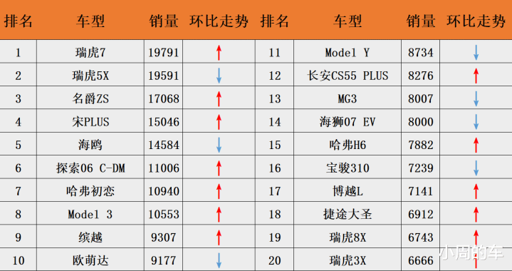 另外,哈弗、吉利以及特斯拉也都有两款车型上榜。其中,哈弗初恋单月出口量破万,达到了10940辆,环比增长17.1%,哈弗H6则是出口了7882辆。吉利这边,缤越出口了9307辆,博越L出口了7141辆,环比8月份增幅均在50%上下。