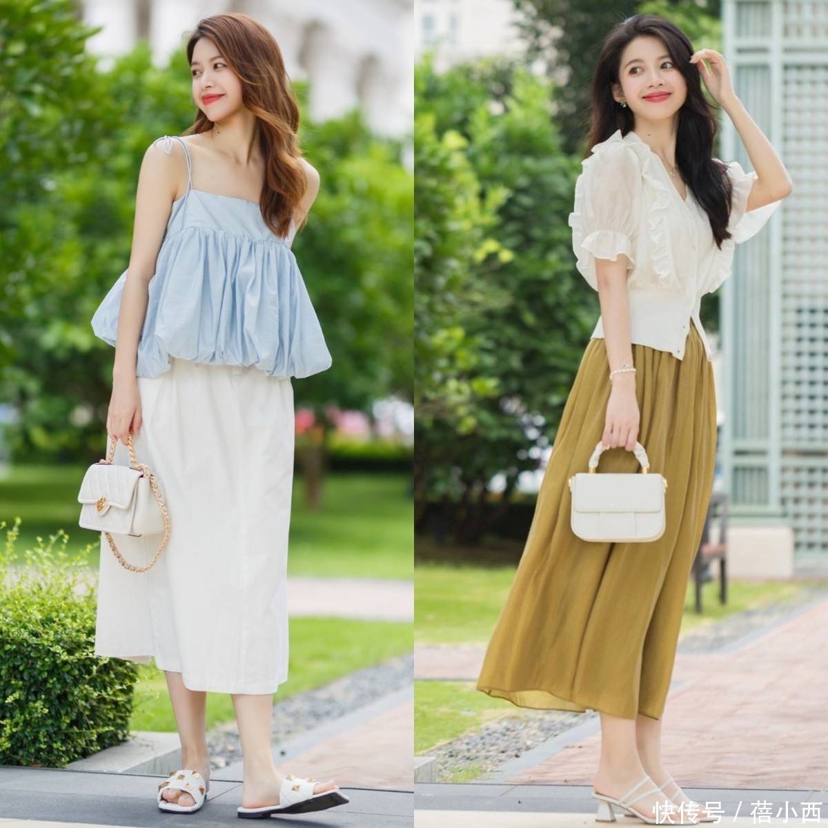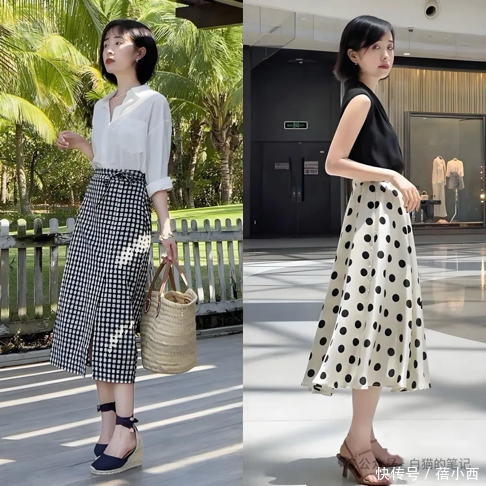 在选择半身裙和凉鞋时,也有一些小技巧。半身裙的长度要根据自己的身高和腿型来选择,腿型不够完美的女生,可以选择能够遮住腿部缺点的半身裙,比如A字裙、伞裙等。