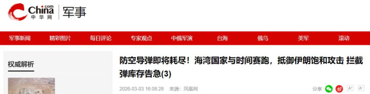 中华网:防空导弹即将耗尽!海湾国家与时间赛跑,抵御伊朗饱和攻击 拦截弹库存告急(3)