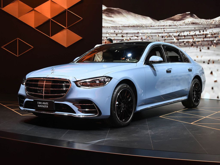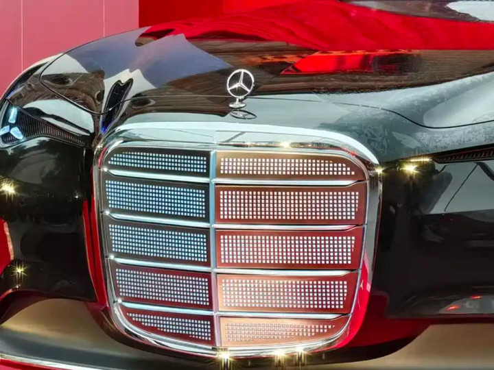 具体来看,下一代奔驰S级换装了奔驰最新的复古大嘴式发光进气格栅,搭配两侧拥有奔驰车标元素的大灯和引擎盖上的立标,整个视觉观感我觉得是比现款S级要更大气和好看一些的。